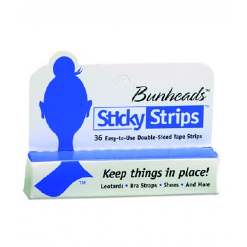 These versatile, easy-to-use doubled-sided tape strips hold leotards and costumes in place, help hide bra straps and keep heels of pointe shoes on. Also perfect for holding Irish Dancer’s poodle socks in place. 36 per package.