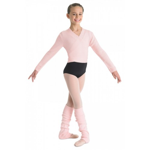 Girl's wrap knit cross over sweater for the young dancer. This classic ballet dance look is deal for warming up and going to and from classes.